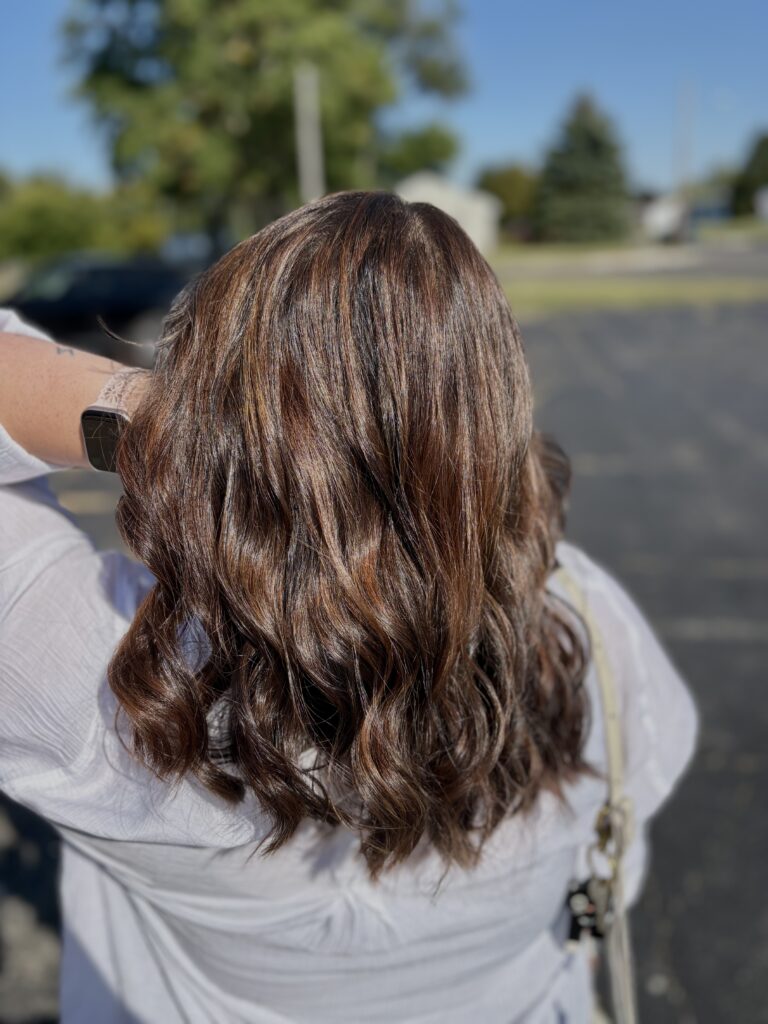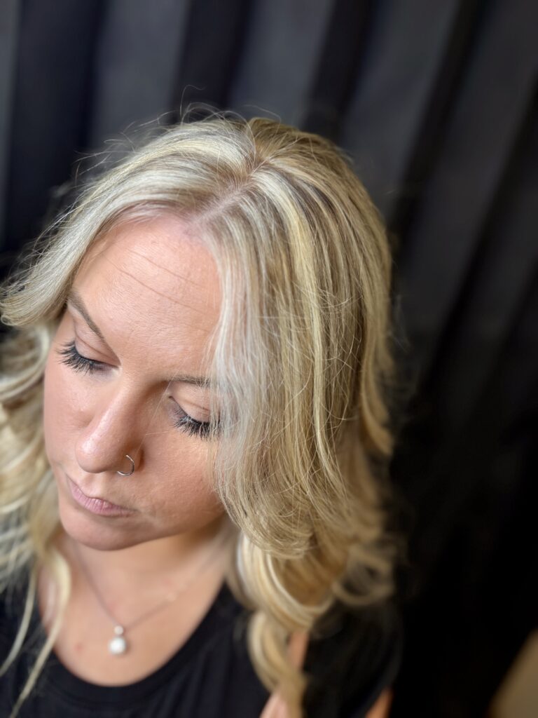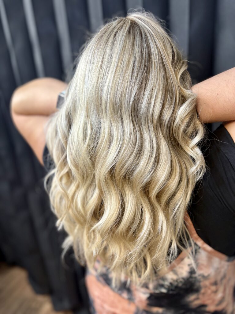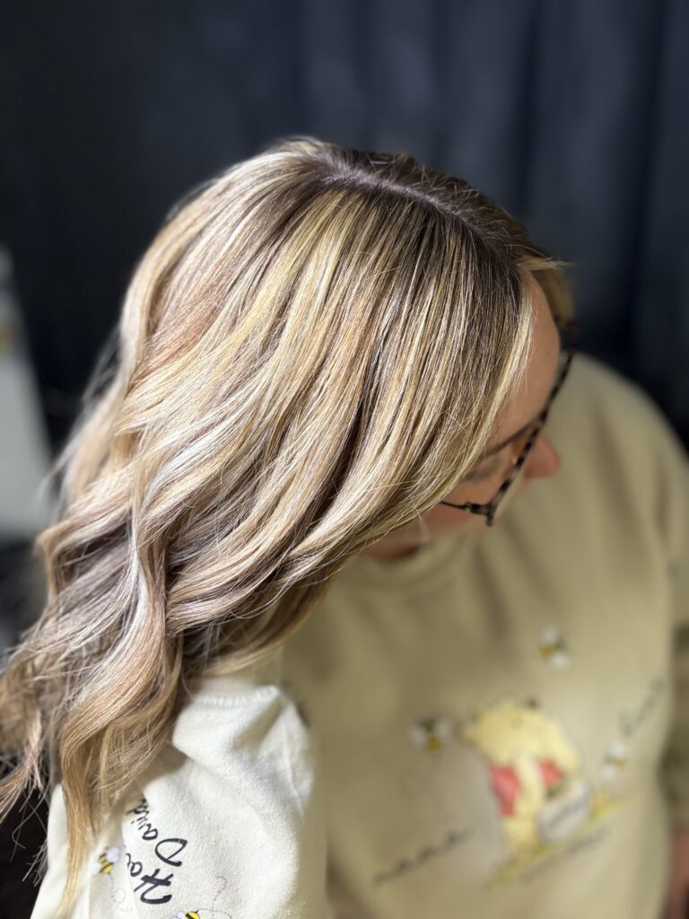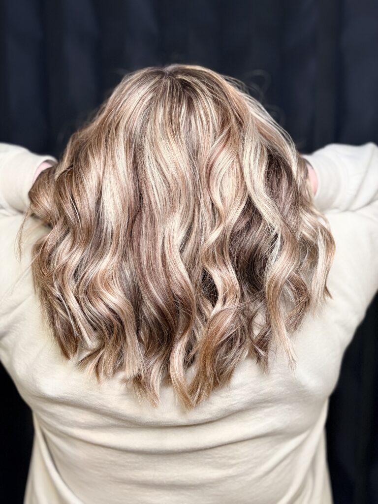 - $125 – Full Balayage: A hand-painted highlighting technique that creates soft, natural-looking dimension from root to tip. Perfect for those who want a sun-kissed, lived-in blonde or brunette look with brightness throughout the entire head. Low-maintenance and customizable, a full balayage grows out seamlessly and is tailored to your personal style.